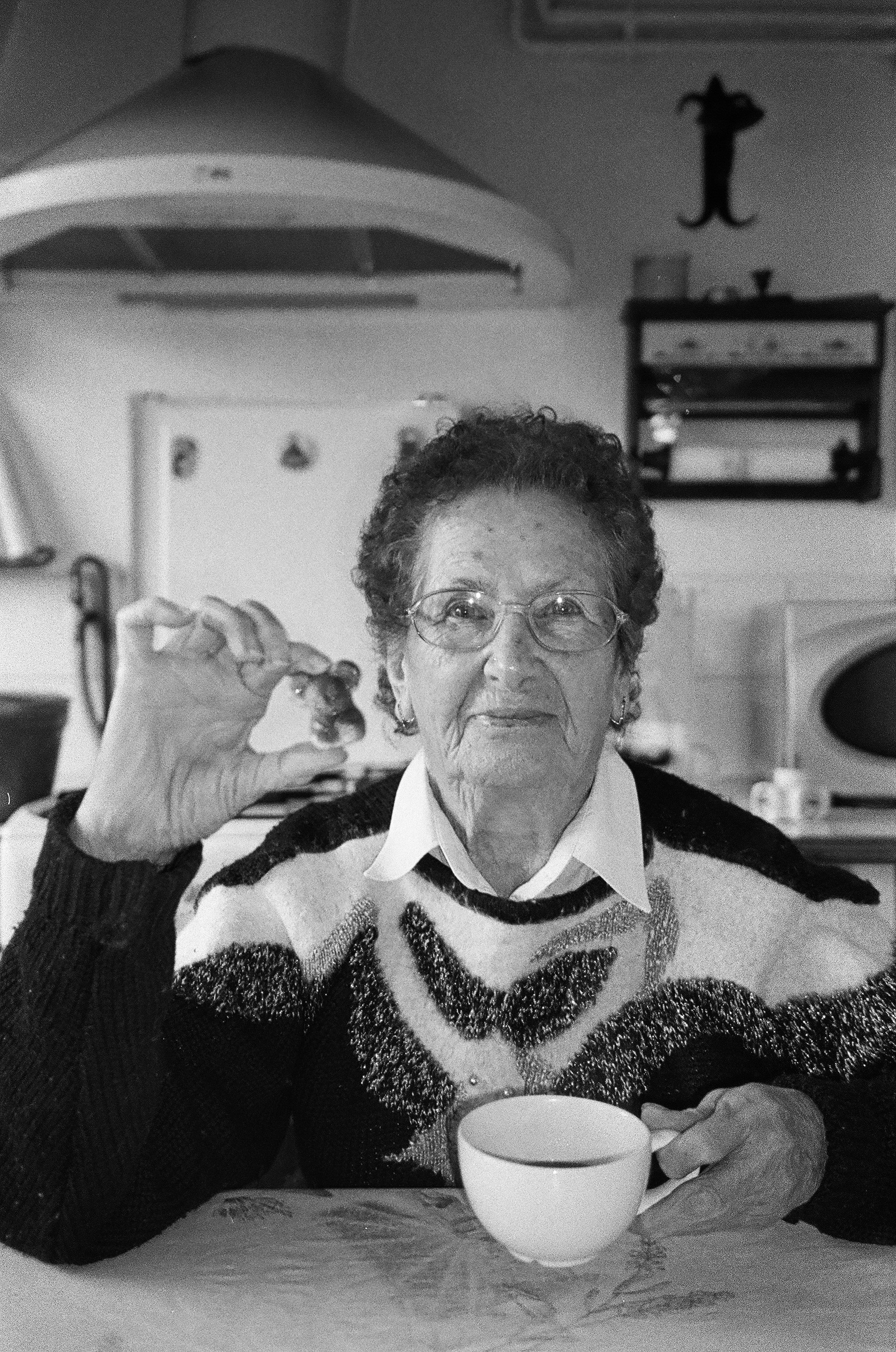 Je la photographie, enregistre ses mots et la filme depuis plusieurs années. Maîtresse du fragnol appliqué (mélange de la langue française et espagnole), elle est ma muse absolue. Femme, mère, grand-mère, arrière-grand-mère et arrière-arrière-grand-mère, elle est fière de nous dire, lors de nos grandes réunions de famille ‘“tout ça, c’est moi qui l’ai fait” en nous désignant tous.